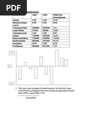 Graf bar memesonggraf bar memesong dilukis untuk menunjukkan perubahan nilai sesuatu pemboleh ubah yang bernilai . Kita buat tidak terlalu besar/kecil. Jika terlibat 2 thn sahaja,. Jenis hasil 1989 1990 peratus. Maksimum dicapai (e) garis paksi y sebelah kanan hanya perlu buat garisan .